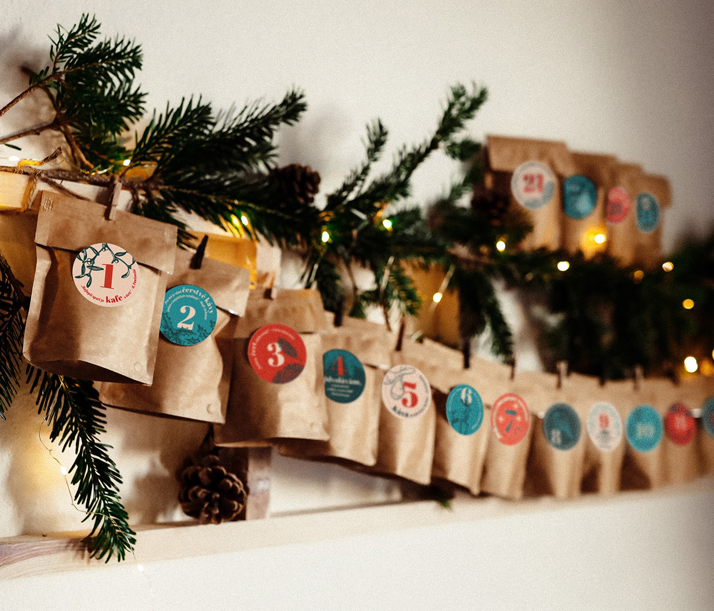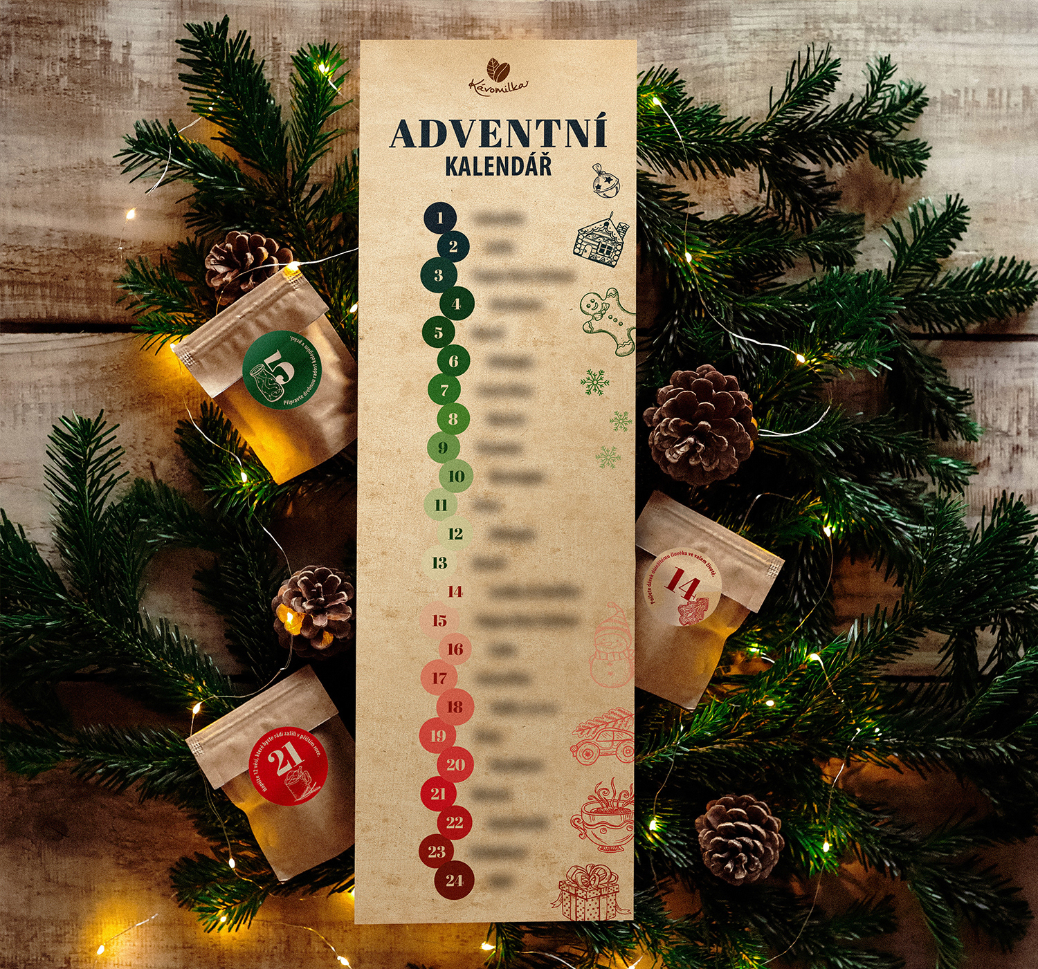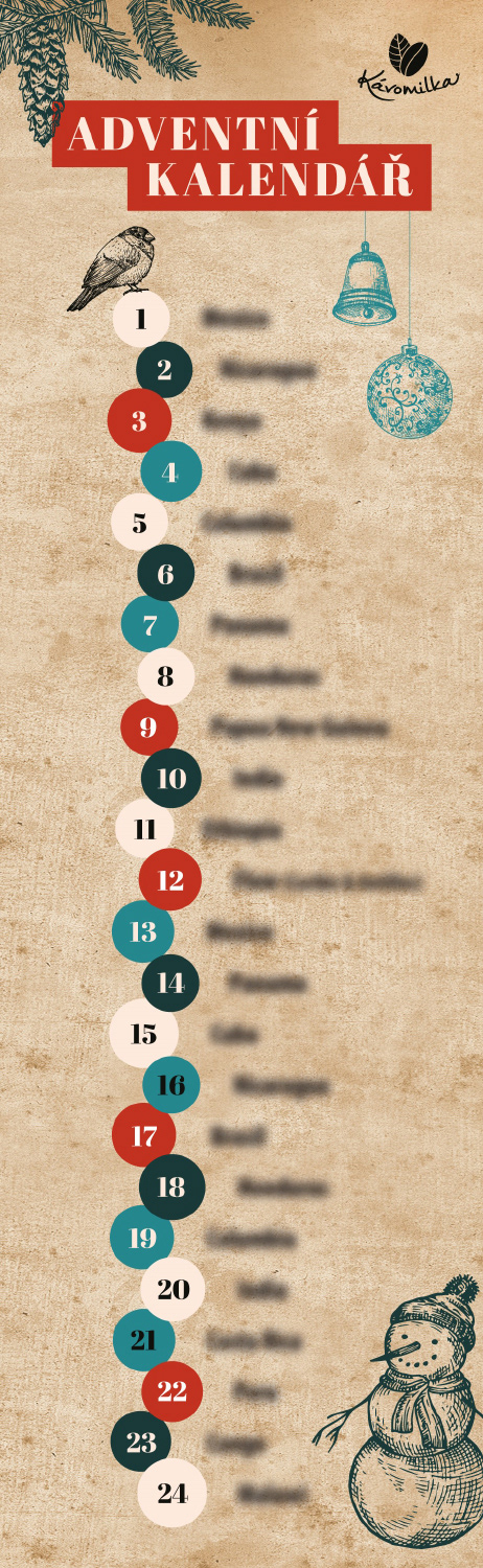 kávový adventní kalendář a samolepky 2024
