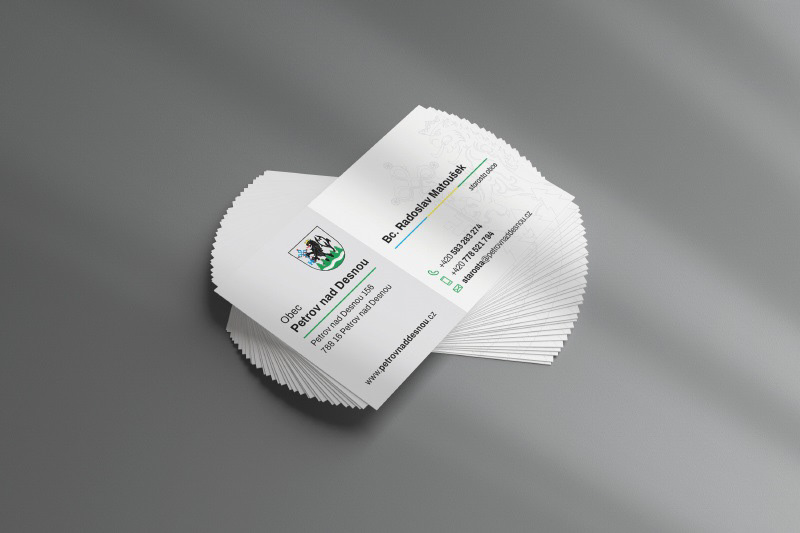 Dále vznikly vizitky pro zaměstnance OÚ a hlavičkový papír v několika verzích pro různé účely, vše dohromady vizuálně korespondující.